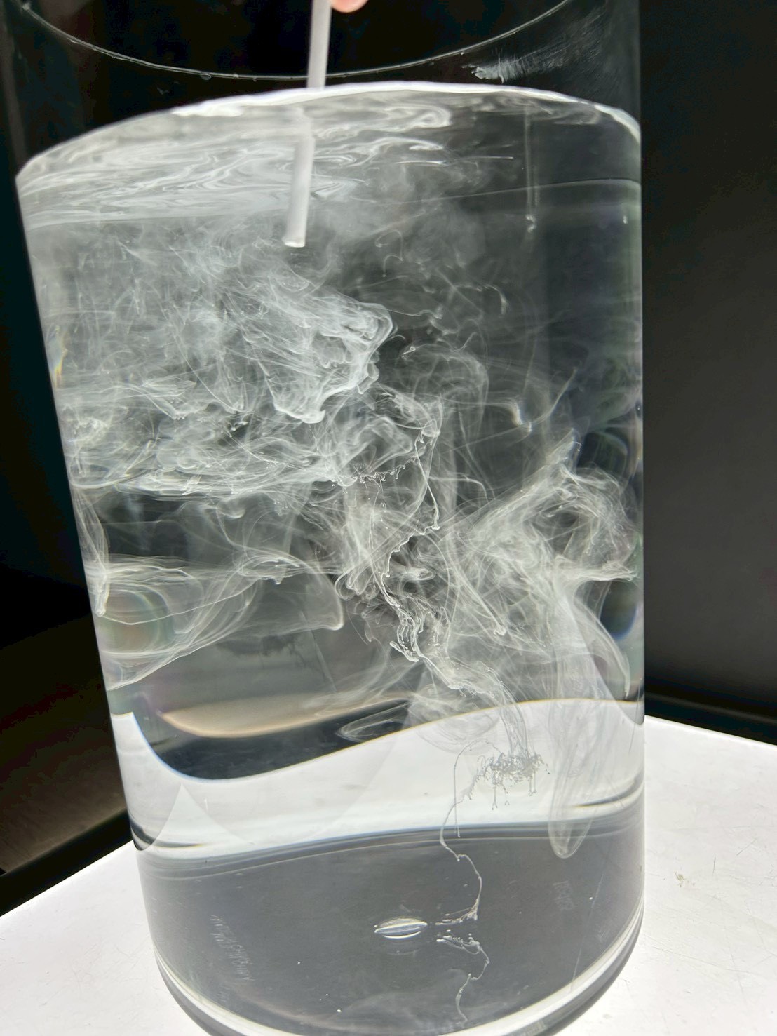 絵の具をポタリと垂らすと、白くふわふわと動く様子を見て